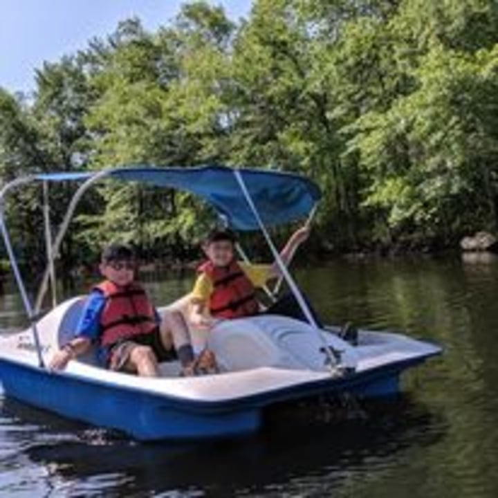 A fleet of eight “open-deck” kayaks are available for Webelos (as per the BSA Guide to Safe Scouting). Three 2-person paddle boats can be used by all scouts (and adults after the scouts get first dibs). OR float one of our den-sized wooden rafts on the fishing pond. The Scouts learn teamwork and balancing skills as they work together to paddle the raft around the pond and avoid the floating obstacles.