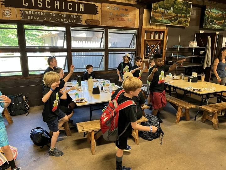 Tuesday night is Family Night at camp Acahela. All visitors are welcome to join us for a special dinner beginning at 5:45 with our assembly. Dinner will follow immediately after assembly. All families and friends are invited to attend, but reservations must be made in advance (at Sunday check-in). Cost: $10.00 adults, $6.00 children under 10. Unit leaders are asked to advise visitors about camp procedures, especially regarding parking, pets, food & wildlife, and smoking. The camp staff will hand-stamp all Tuesday visitors as they enter the gates, instead of using the wristbands.